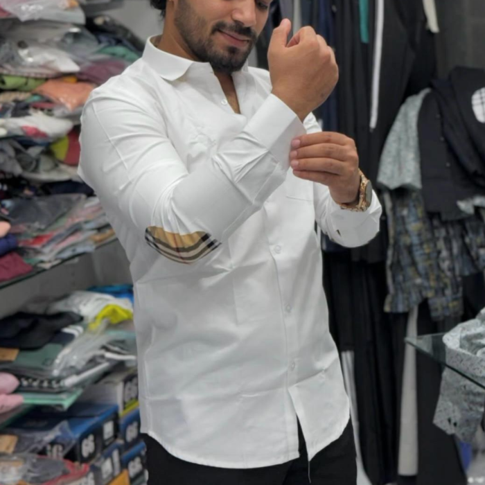 Timeless style meets modern detail with the Classic Edge white shirt, featuring subtle yet stylish elbow patches that add a touch of sophistication. Perfect for those who appreciate clean design with a bit of personality, this shirt is made from soft, breathable fabric that keeps you comfortable all day long. Whether you're dressing it up or keeping it casual, it's a versatile piece that brings quiet confidence to your wardrobe.